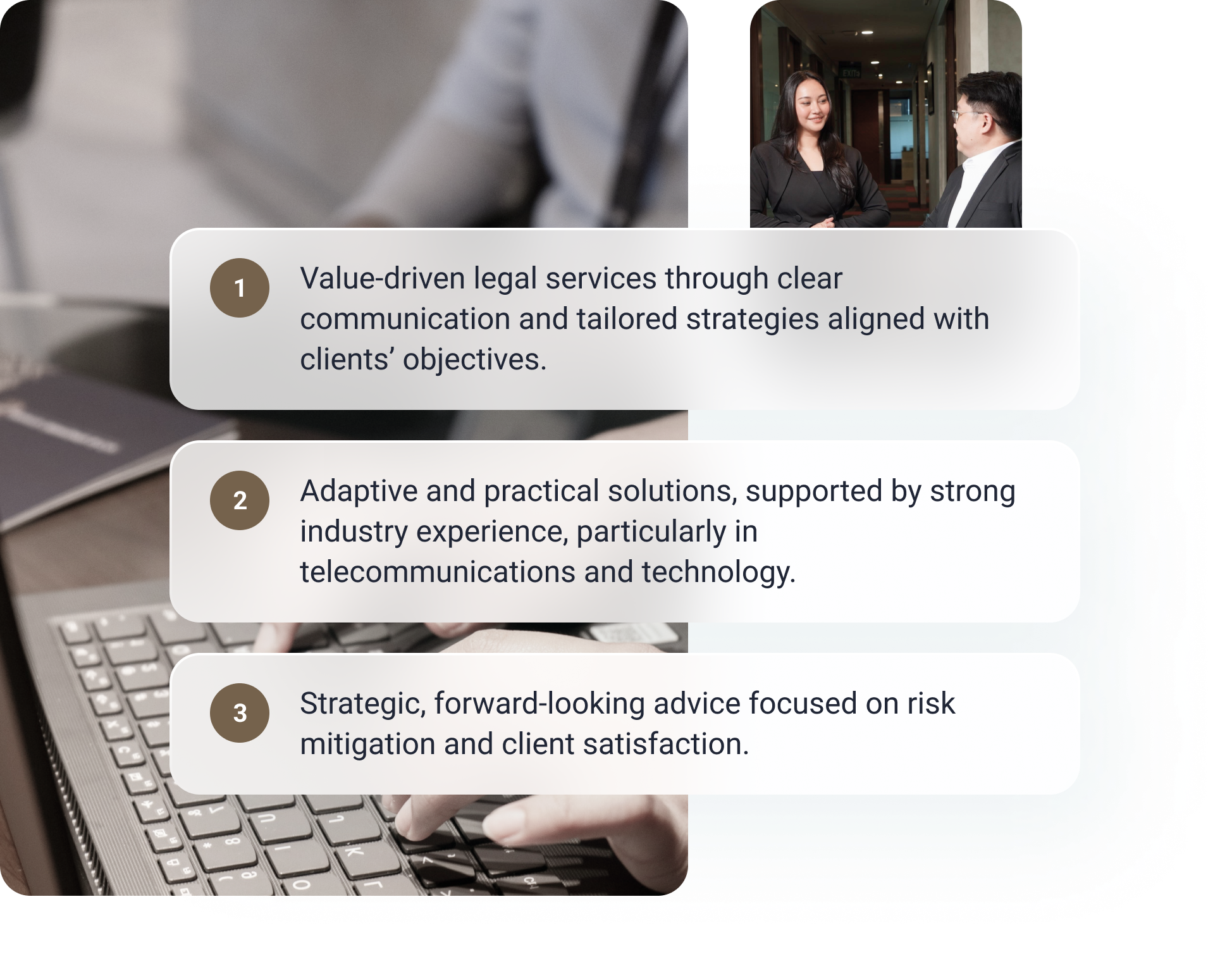 Led by Shinta Sriwijaya, our legal team brings a wealth of experience, cross-industry insights, and dedication to every client we serve.